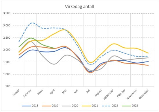 Selv om mangelen på arbeidskraft har gått betydelig ned siden rekordåret 2022 er den fortsatt stor. Over de siste ti årene er det bare 2022 og 2019 som har vist større mangel enn hittil i 2023.